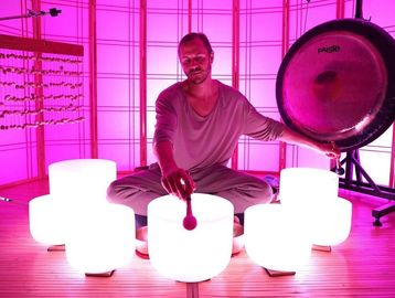 I am constantly monitoring my mood,. nervous system, and vibration since they are so core to my ability to stay grounded, focused, creative, and productive. Tuning into binaural beats, healing frequencies (Hz), meditative music, singing bowls, Gregorian chants, choir music, or nature sounds in the car, on the go, in the office, or at home creates an immediate positive shift for me. Available anywhere you stream music.